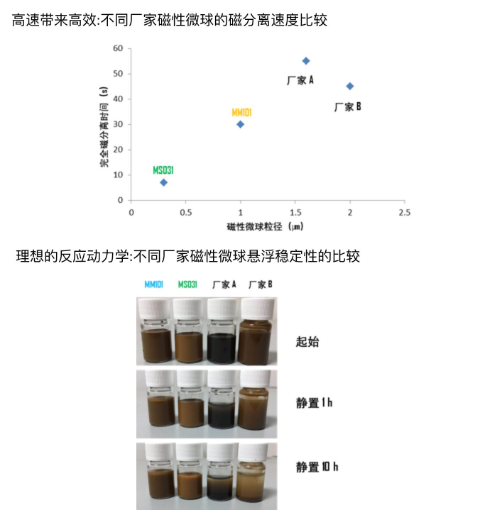 超順磁性,外加磁場消除后無剩磁致密的殼層包裹,磁顆粒無暴露風險
