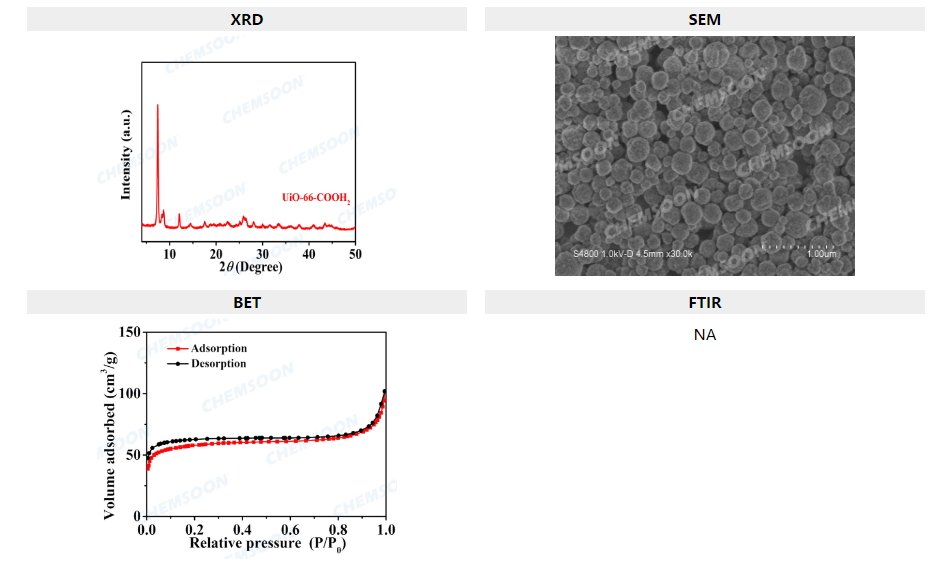 1) 2COOH-UIO-66 性質穩定,在水溶液和酸性條件下穩定。