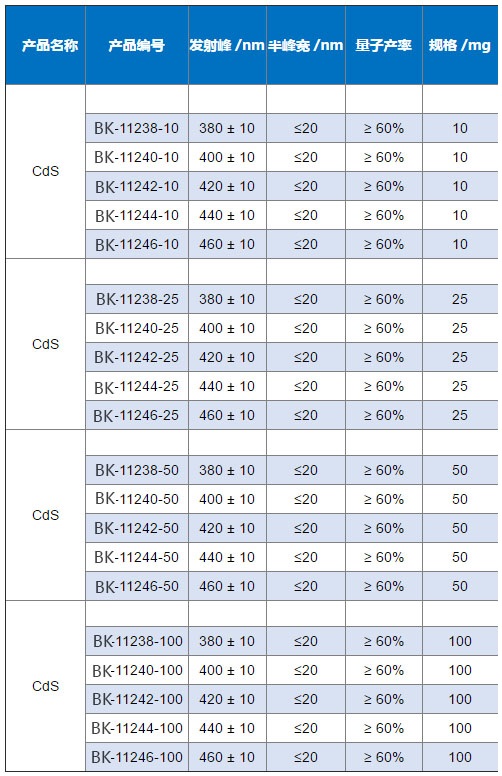 蘇州北科納米科技有限公司生產的油溶性CdS量子點,表面由疏水配體包裹熒光納米材料,平均的量子產率為60%以上,儲存時應避免陽光直射,4度密封暗處保存,可以為客戶訂制生產360nm~460nm任一波長不同克數的產品。本產品具有粒徑均一,吸收光譜寬泛,發射光譜窄而對稱,熒光強度高而穩定等特點,可應用于太陽能電池、發光器件與生物熒光標記等領域。