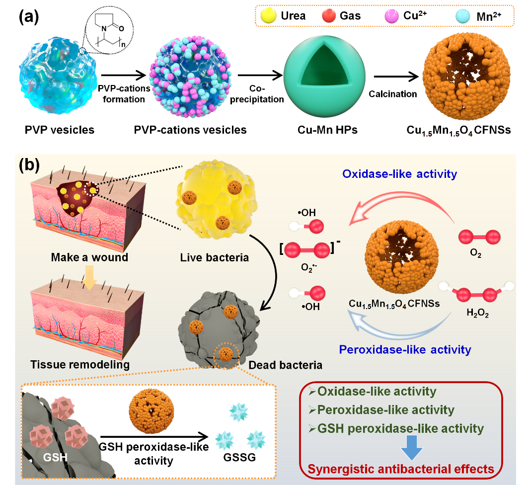 Bimetallic oxide Cu1.5Mn1.5O4cage-like frame nanospheres with triple enzyme-like activities for bacterial-infected wound therapy