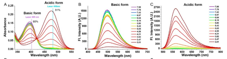 其他說明:密封狀態下保質期半年【主要優勢】基于鉻喹啉的熒光比率pH探針,具有吸引人的光物理性質,它針對細胞的質膜(PM),并通過內吞作用進一步在細胞內囊泡中積累。Mem-pH向囊泡腔的暴露允許通過整個內吞途徑監測囊泡的酸化,并通過比值成像測量其pH。