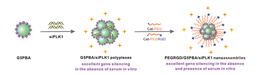其他說明:密封狀態下保質期半年【主要優勢】PEG/G5PBA/siRNA納米組裝體在含血清的培養基中表現出良好的血清抗性和基因沉默效果,在血清中有效地傳遞siRNA。