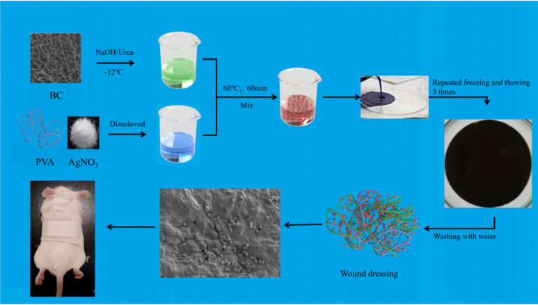 Antibacterial polyvinyl alcohol/bacterial cellulose/nano-silver hydrogels