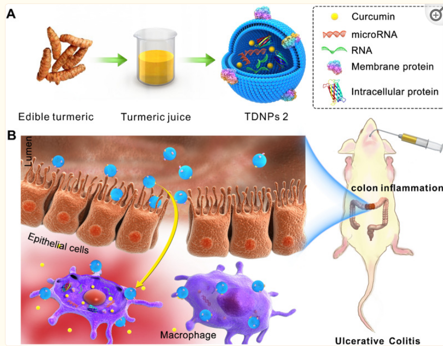 Oraladministration of turmeric-derived exosome-like nanovesicles withanti-inflammatory and pro-resolving bioactions for murine colitis therapy