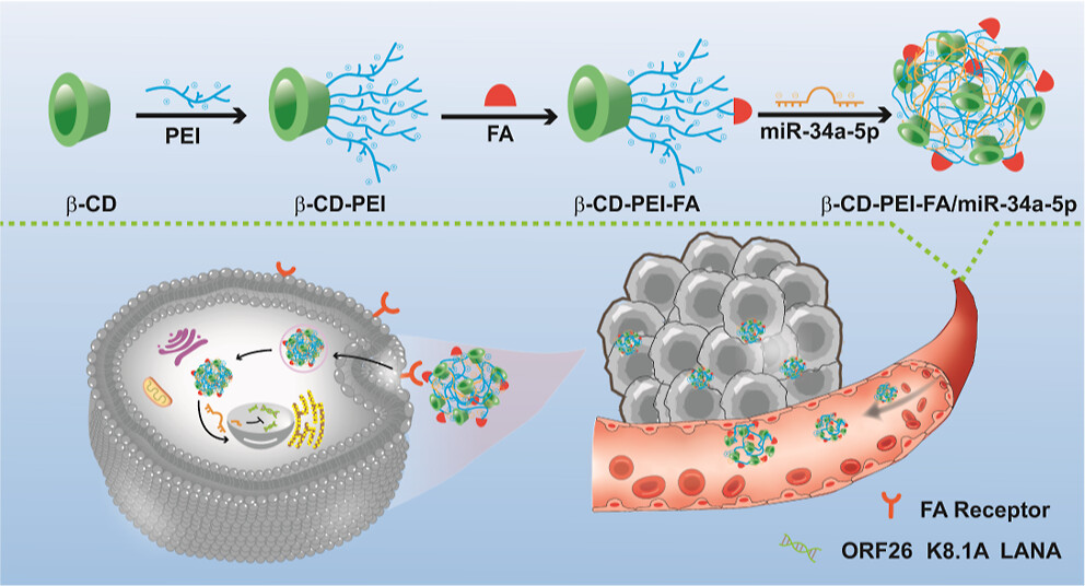 Delivery of miR-34a-5p by Folic Acid-Modified β-Cyclodextrin-Grafted Polyethylenimine Copolymer Nanocarriers to Resist KSHV