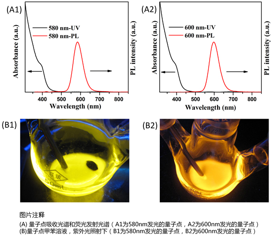 蘇州北科納米科技有限公司生產的油溶性Mn摻雜結構量子點產品,平均的量子產率為50%,儲存時應避免陽光直射,4度密封暗處保存,可以為客戶訂制生產580nm~600nm任一波長不同克數的產品。本產品具有粒徑均一,吸收光譜寬泛,發射光譜對稱,熒光強度高而穩定等特點,可應用于太陽能電池、發光器件與生物熒光標記等領域。 本產品為無鎘量子點。