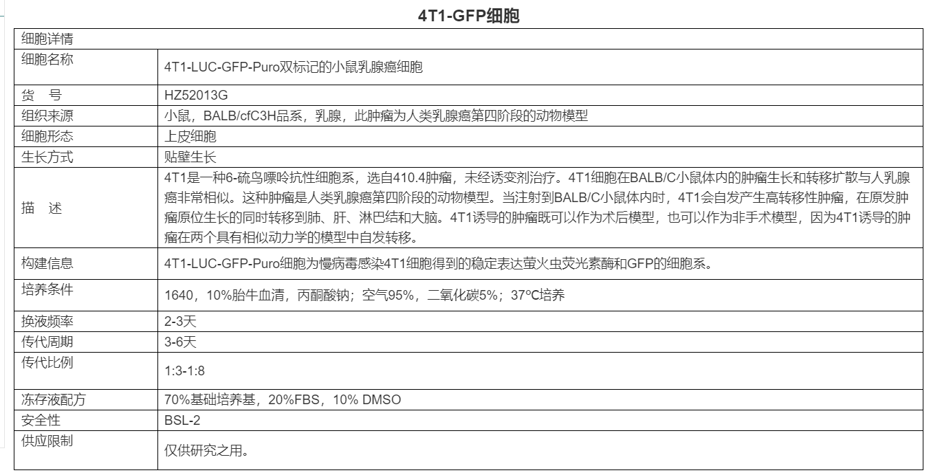 名稱:4T1-GFP-LUC