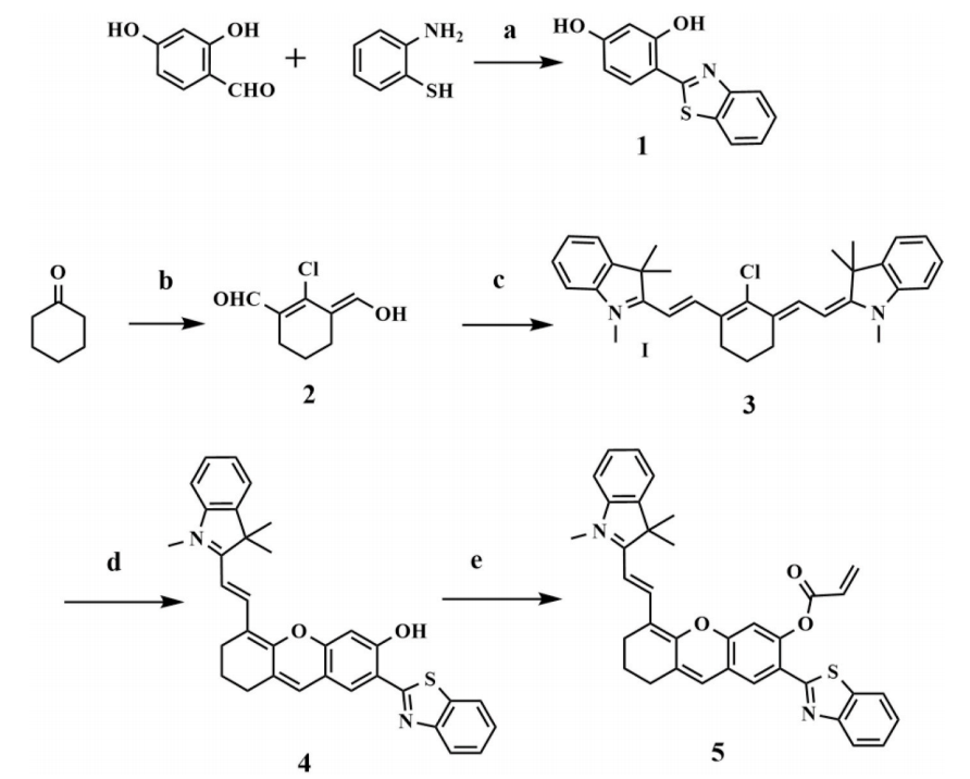 Composition: 2,4-dihydroxy-benzaldehyde 2-aminobenzyl thiol cyanine 3 1,2,3,3-tetramethyl-3H-indolium