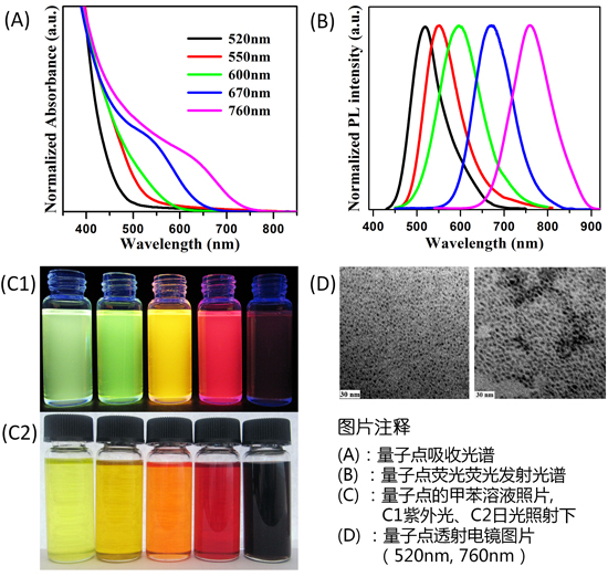Oil-soluble CuInS/ZnS quantum dots PL 530 nm--750 nm