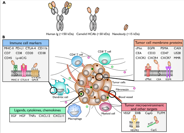 常見的腫瘤微環境納米抗體開發靶點[3]