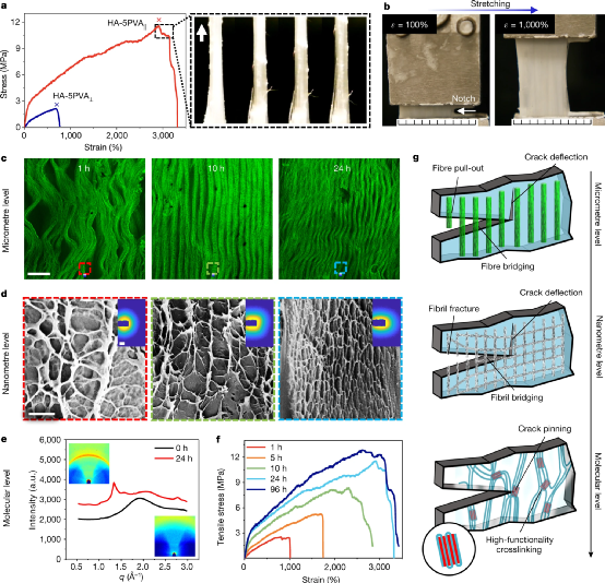 天然的承重材料(例如,肌腱)具有約70%的高含水量,但即使每年使用超過100萬次循環,也仍然堅韌不拔,這是由于在多個長度范圍內各向異性結構的分層組合所致的。