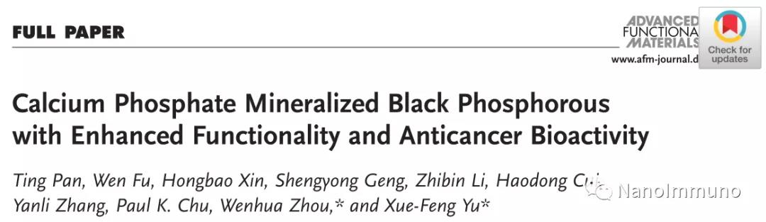 喻學(xué)鋒AFM:磷酸鈣礦化黑磷具有增強(qiáng)的功能和抗癌生物活性