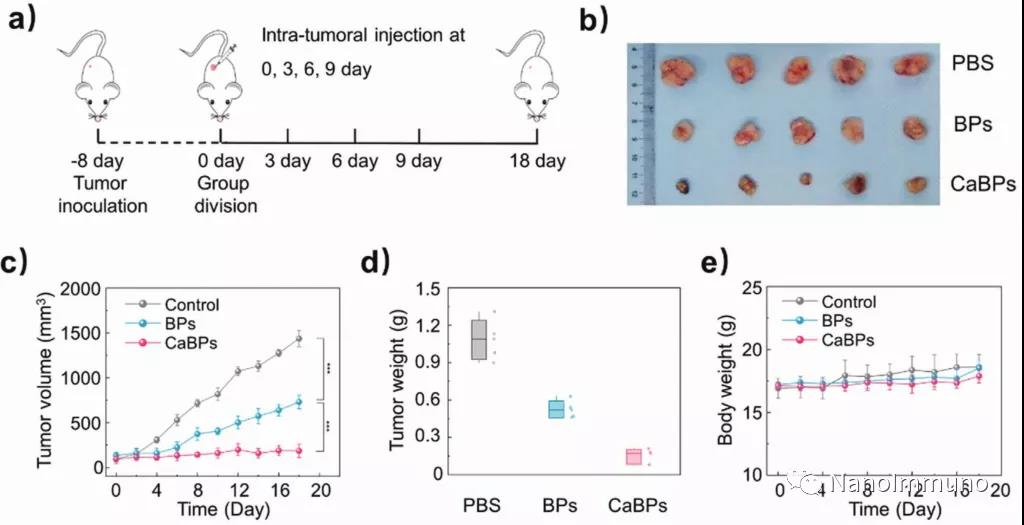 由于其固有的抗癌活性,可生物降解的無(wú)機(jī)納米材料為癌癥治療開辟了新的前景。黑磷納米片(BPs)具有獨(dú)特的生物活性,最近已被確認(rèn)為有前途的癌癥治療劑,但由于表面功能化的困難而使其應(yīng)用受到阻礙。中國(guó)科學(xué)院深圳先進(jìn)技術(shù)研究院喻學(xué)鋒、Wenhua Zhou報(bào)道了原位磷酸鈣(CaP)礦化策略以增強(qiáng)BPs的抗癌活性。