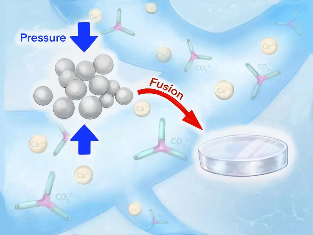 Professor Tang Ruikang, Department of chemistry, Zhejiang University, cooperated with researcher Liu Zhaoming in the latest research and found that the fusion of amorphous calcium carbonate particles can be realized by adjusting the internal structure, water content and external pressure of amorphous calcium carbonate particles. This strategy of using the structural characteristics of materials to promote mass transfer overcomes the shortcomings of traditional sintering and provides a new method for the preparation of inorganic bulk materials, In particular, it provides an important preparation strategy. According to this method, the broken mirror can really be reunited as it appears.