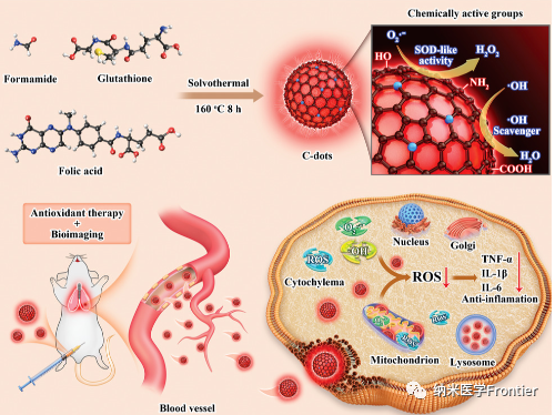 本研究的主題是紅光碳點(diǎn)(CDs),它是一種具有超氧化物歧化酶模擬酶活性(SOD)的納米材料,可以用于生物成像和改善急性肺損傷(ALI)。