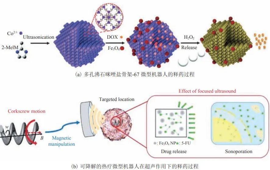 The emergence of micro and nano robots has promoted the development of precision medicine. These miniaturized robots, built through self-assembly, electron beam deposition and 3D printing, can initiate chemical reactions or move in response to external fields such as ultrasound, light and magnetic fields, as well as microbes (cells). They have a wide range of uses in biomedicine, enabling precise cargo delivery by loading drug particles, biological reagents and living cells. It can also be used as a small surgical tool for surgery, treatment of diseases; It can also detect metal ions and other substances in living organisms to do a good job of early diagnosis of disease; In addition, it can also perform medical imaging by different methods such as photoacoustic and magnetic resonance.